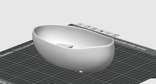 Deze afdruk is wat uitdagender. Door de ronde vorm van het bad kunnen de layerlines op de relatief vlakke delen goed zichtbaar worden, en moeten ze mogelijk worden bijgewerkt of geschuurd. Hiervoor heb ik de wanddikte minimaal op 4 mm gezet. Je zou ook kunnen experimenteren met een laaghoogte van < 0,2 mm of met variabele laaghoogte, als je slicer dit ondersteunt.